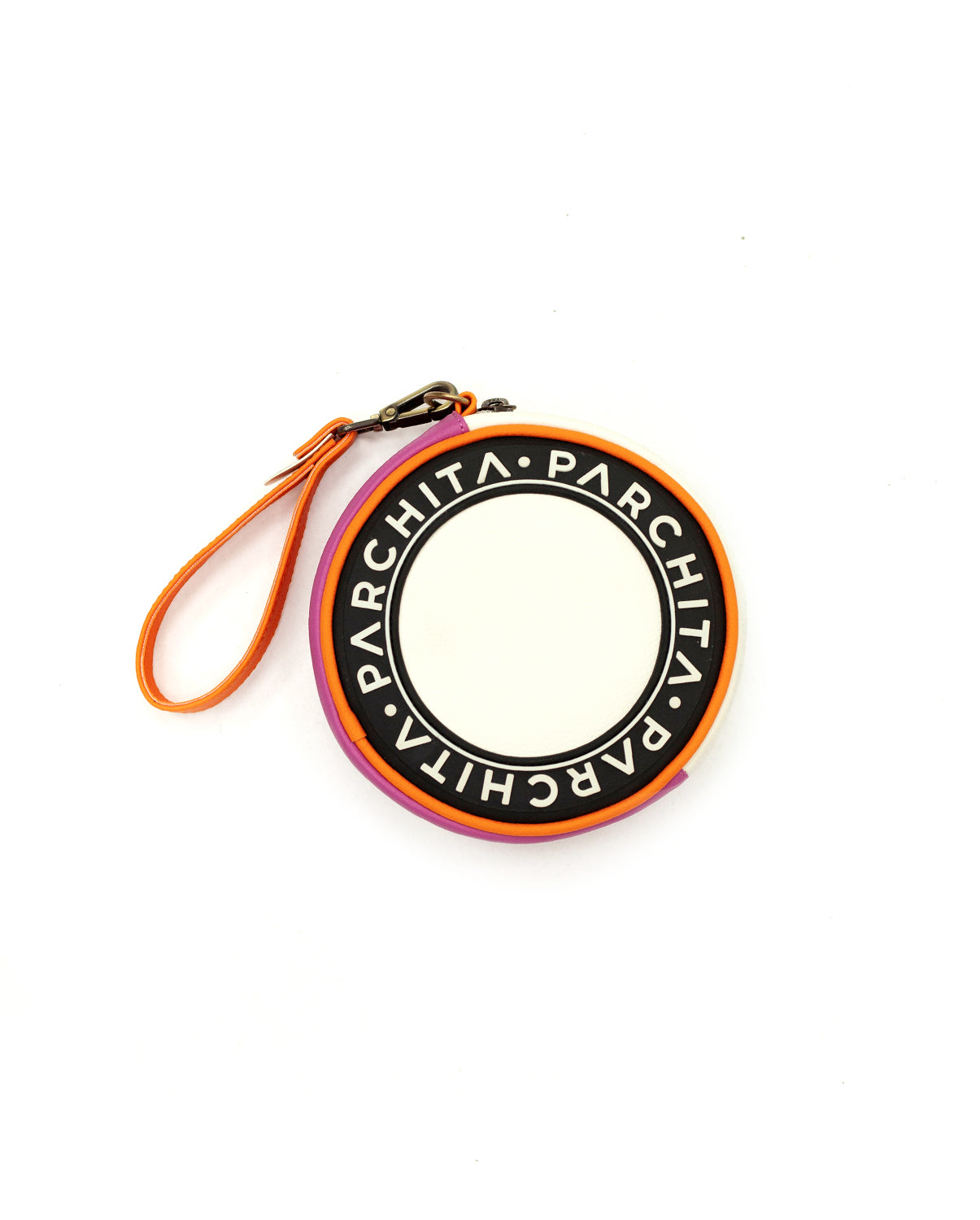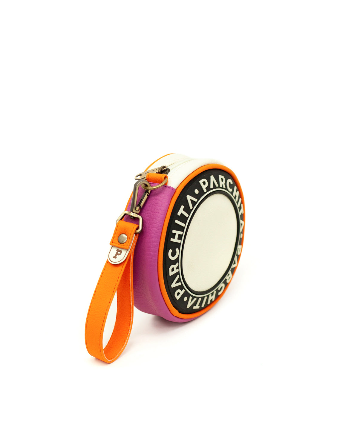 Nuestra mini disco tiene una forma circular y dinámica. El característico Parchita en relieve, herrajes pavonados y llavero son detalles que la llevan a otro nivel. Es perfecta para llevar a todos lados.